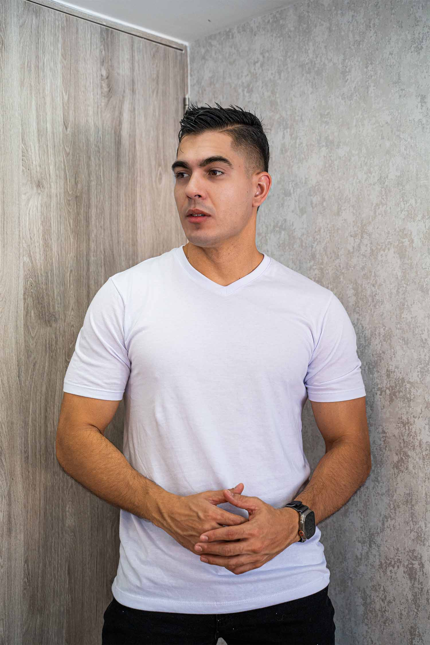 CAMISETA CUELLO EN V ADULTO PEINADO