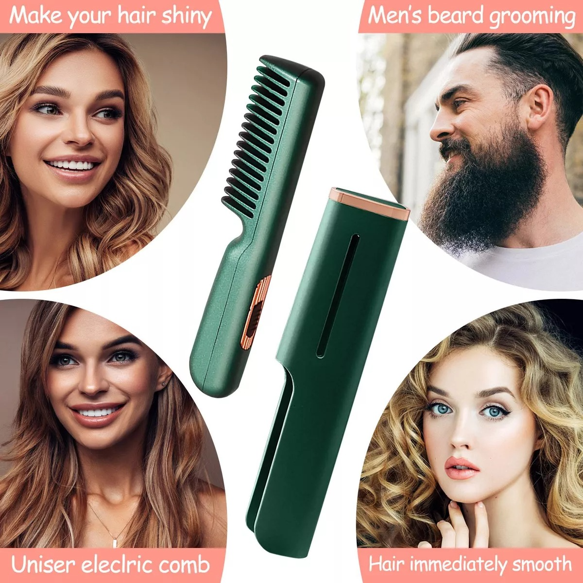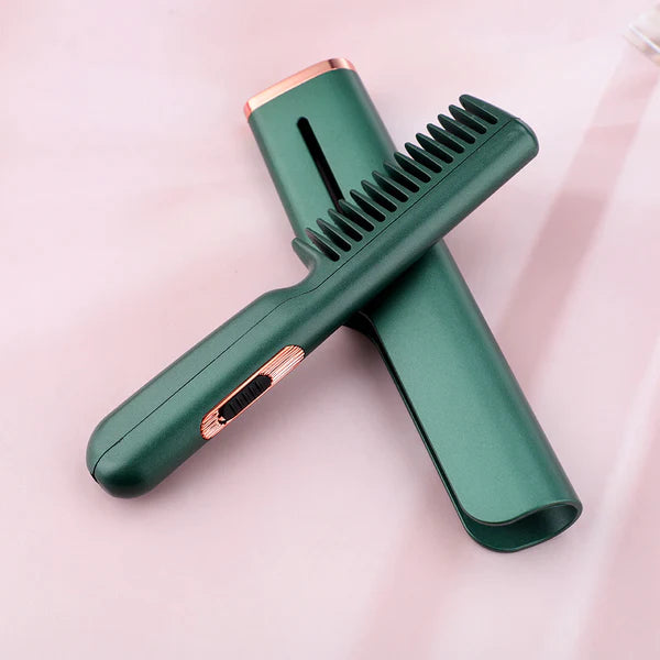 Alisador de pelo eléctrico inalámbrico y rizador 2 en 1 peine seco carga USB enderezamiento caliente verde