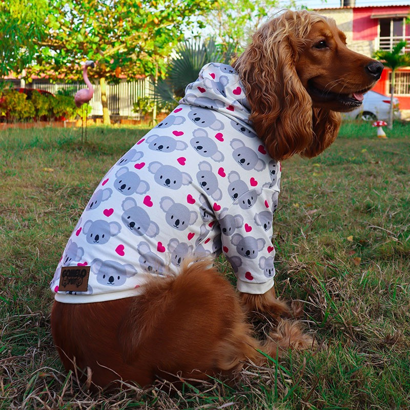 Lléva contigo este fabuloso HODDIE con estampado de KOALAS para proteger a tu mascota en estos días fríos, cuenta con capota para darle un toque mas cool, además de resorte en la parte inferior y puños para brindar un mayor ajuste. Esta prenda será la sensación, es deportiva, exclusiva y cómoda para tu mascota le permitirá tener una gran movilidad y verse espectacular ádemas de ser suave al tacto. Cuenta con forro brindando abrigo para estos dias frios.
