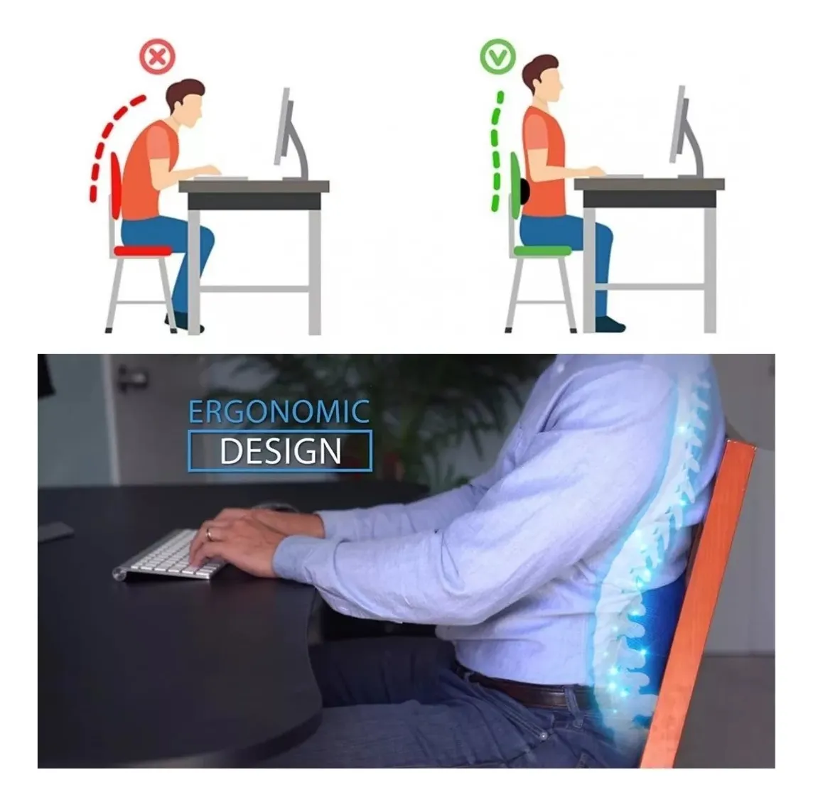 Cuida tu postura y alivia la tensión lumbar con esta almohada ergonómica, diseñada para brindar confort y soporte donde más lo necesitas.