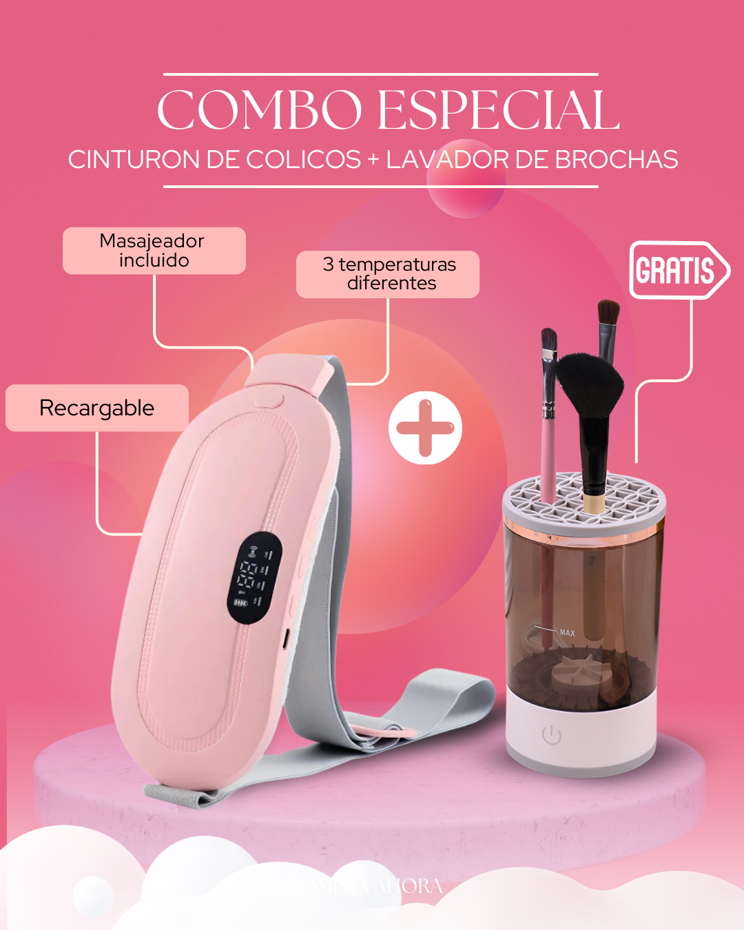 COMBO CINTURON TERMICO PARA COLICOS + LIMPIABROCHAS