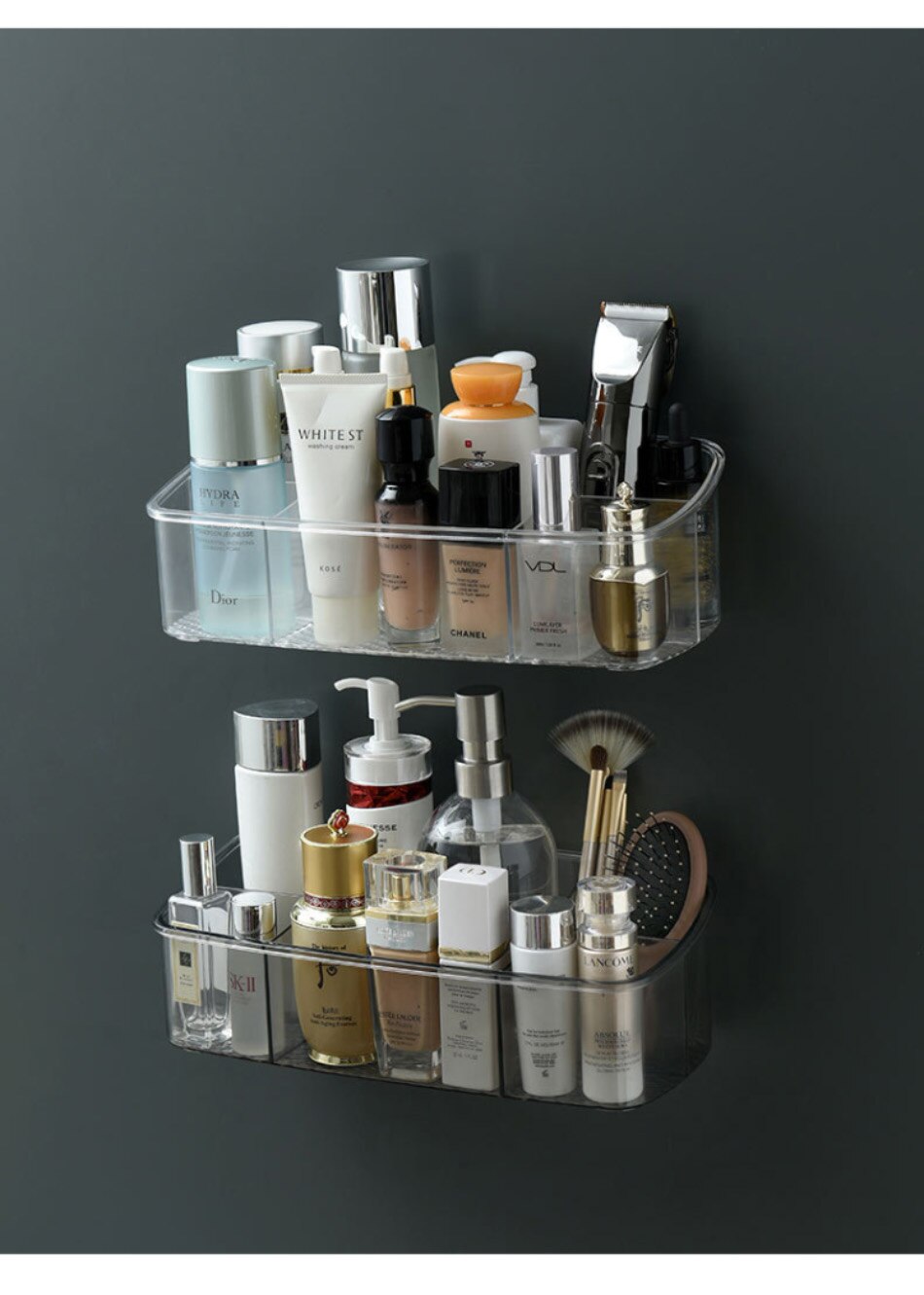 1. Caja de almacenamiento de cosméticos transparente no perforada montada en la pared, capacidad de soporte fuerte y aspecto hermoso.