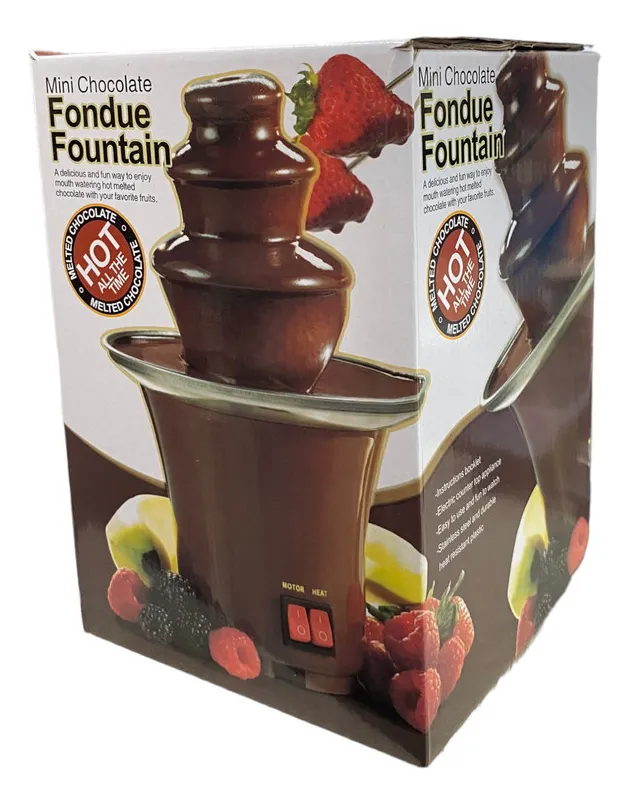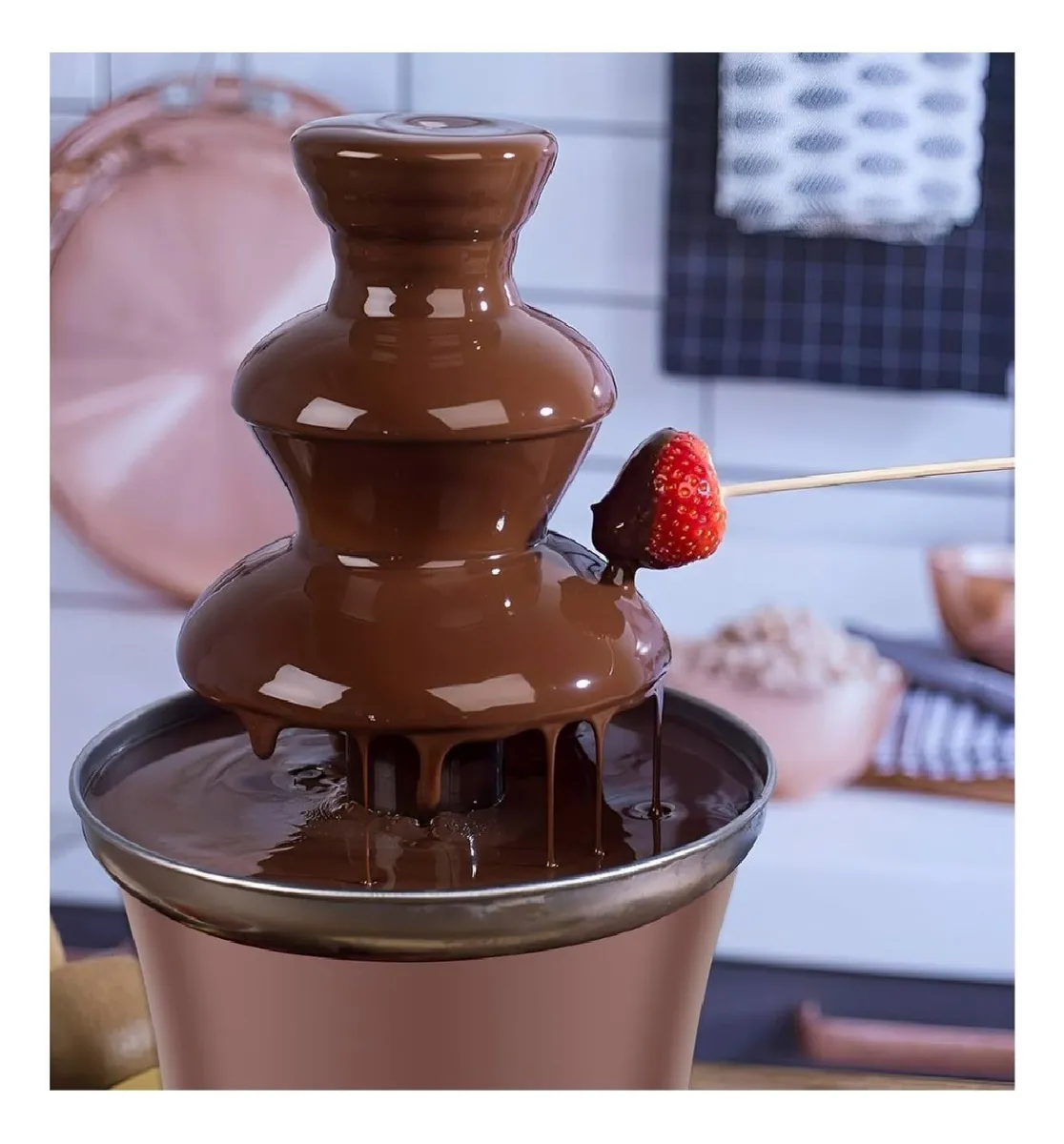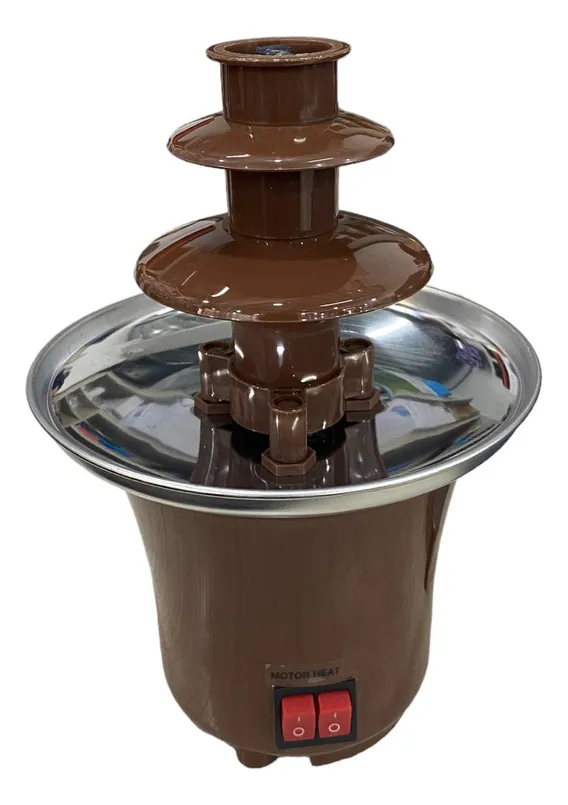 Mini Fuente de Chocolate de 2 Niveles – Modelo BD-017 ¡Convierte cualquier ocasión en un evento dulce y sofisticado con esta elegante fuente de chocolate! Perfecta para reuniones y celebraciones Ideal para fiestas, cumpleaños, cenas románticas o cualquier ocasión especial en casa. Su diseño compacto la hace ideal para cocinas pequeñas, eventos casuales o celebraciones improvisadas. Características principales: Diseño elegante y moderno: combinación en tonos chocolate y gris que armoniza con cualquier decoración Material duradero: fabricada en acero inoxidable de alta calidad para mayor resistencia y fácil limpieza Funcionamiento práctico: Interruptores independientes para motor y calor Conexión estándar de 110V, lista para usar en cualquier hogar Dimensiones compactas: 22 x 15 x 15 cm Especializada en chocolate: fluye perfectamente para bañar frutas, malvaviscos, galletas y más Nota: No apta para queso u otros alimentos espumosos o densos. Diseñada exclusivamente para el uso con chocolate fundido. Ideal como regalo: Un detalle encantador para los amantes del chocolate o quienes disfrutan de la repostería y la cocina creativa. Dale un toque de lujo y sabor a tus celebraciones con esta mini fuente de chocolate: pequeña en tamaño, ¡pero grande en sabor y estilo!