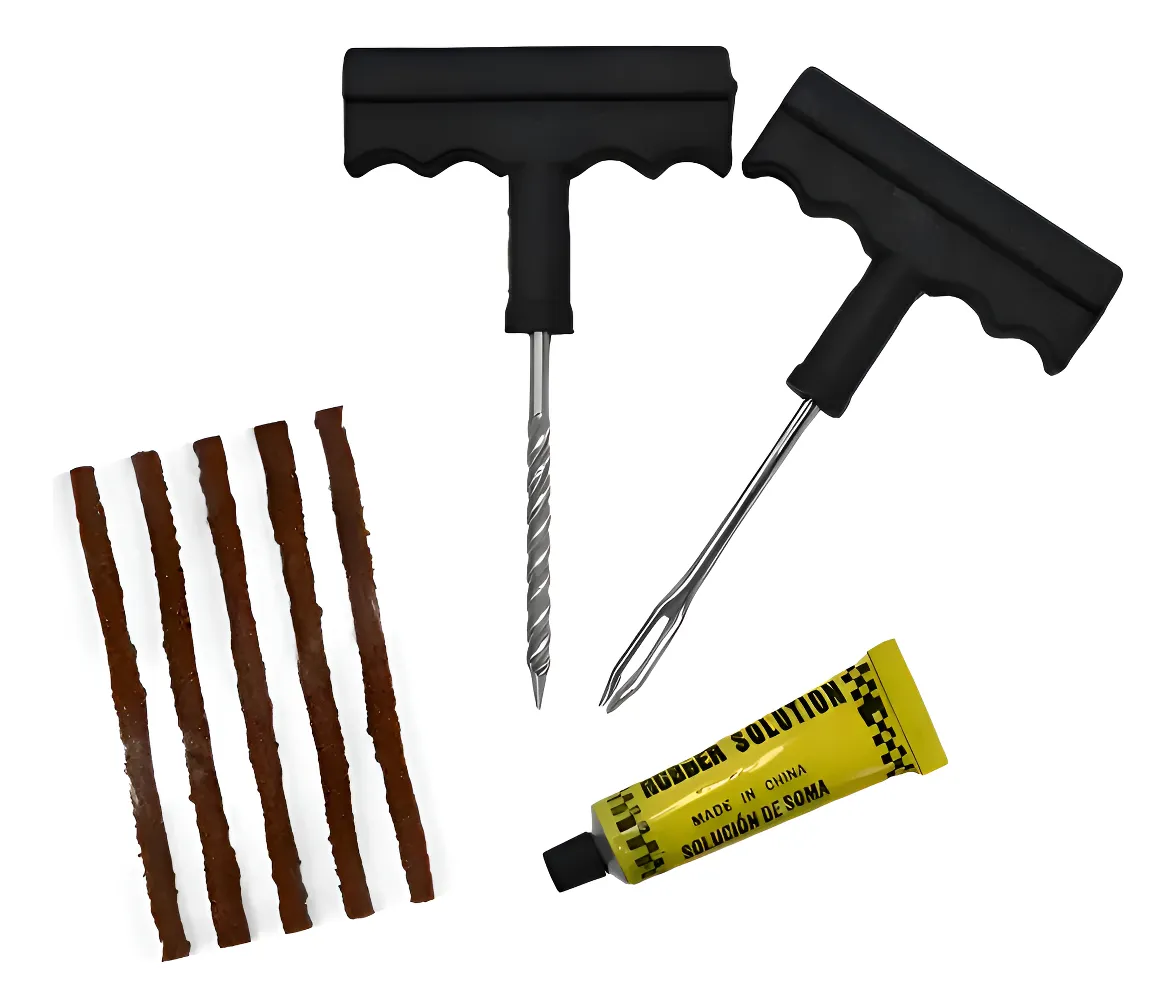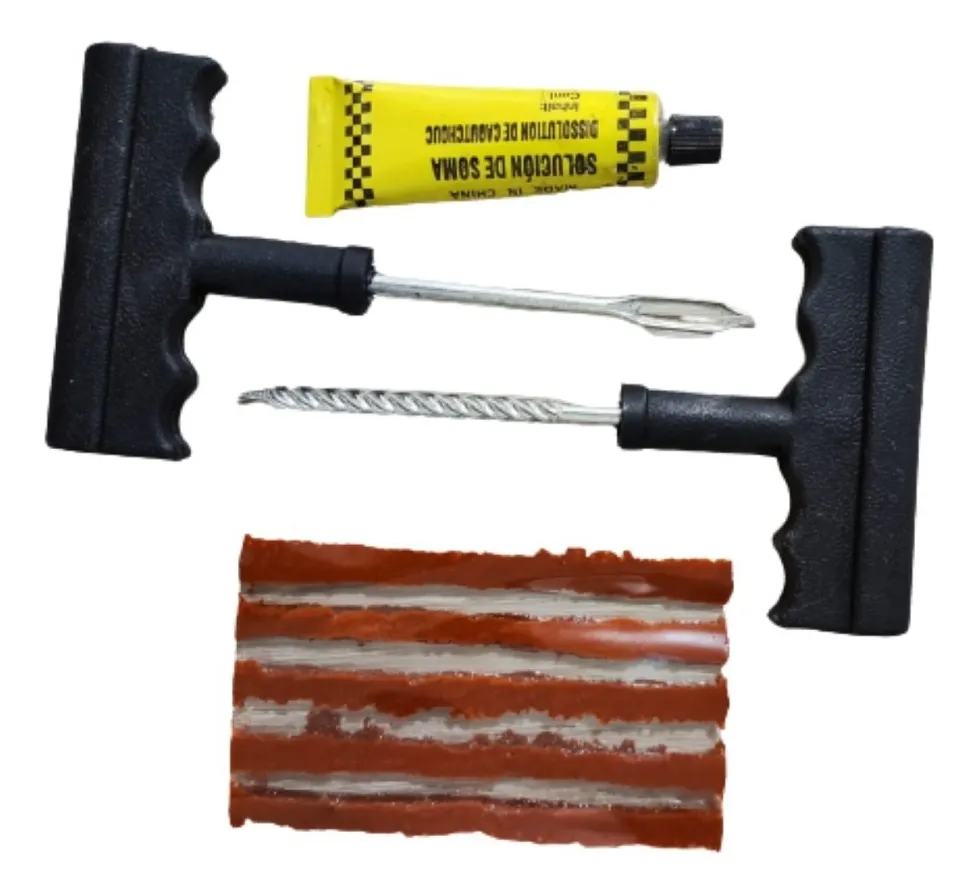 Kit Repara Pinchazos – Solución Rápida y Eficaz para el Camino No dejes que un pinchazo arruine tu viaje. Con este kit de reparación de llantas, podrás solucionar perforaciones al instante sin desmontar la rueda. Compacto, práctico y fácil de usar, ideal para tener siempre a mano en tu auto o moto. Incluye: Herramienta raspadora para preparar la zona afectada Herramienta de inserción con mango ergonómico para mayor comodidad 3 tiras vulcanizadoras de alta resistencia para una reparación segura Tubo de pegamento especial que sella y fija con eficacia Uso recomendado: Autos, motos, cuatrimotos y otros vehículos todo terreno. Diseño compacto: Fácil de guardar en la guantera, mochila o maletero. Permite reparar y continuar tu camino en minutos sin desmontar la rueda.