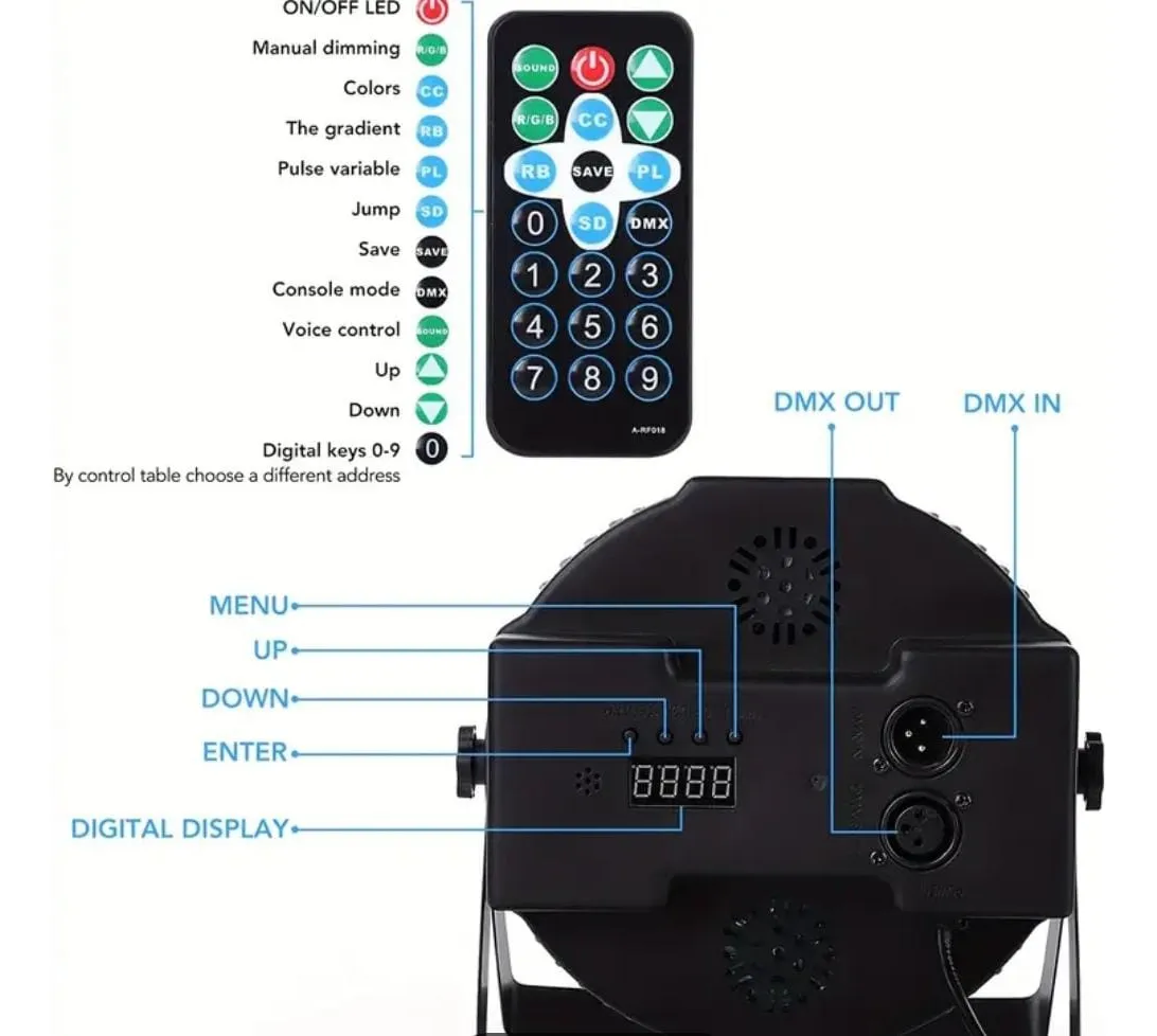 Luz LED Rítmica – 36 LEDs de Colores Transforma cualquier fiesta con esta luz LED compacta y potente. Sus 36 focos proyectan rojo, verde, azul y rosa, creando un ambiente vibrante y dinámico. Características principales: Control DMX: sincronización con música y efectos personalizables. Diseño compacto y portátil, fácil de instalar y transportar. Cobertura amplia con gran impacto visual. Hasta 8 horas de uso continuo. Conexión rápida mediante puerto USB. Ideal para: DJs, eventos, celebraciones y quienes buscan un efecto profesional en sus fiestas.