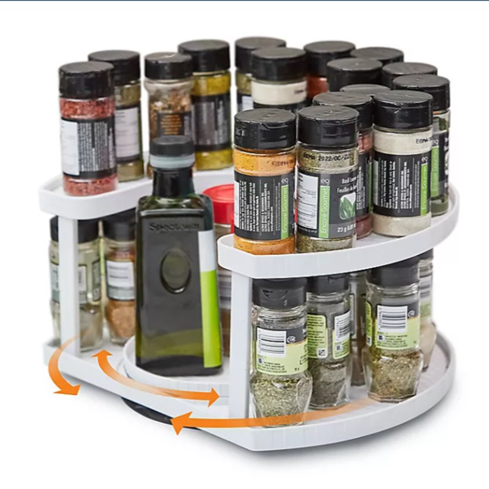 3. Estantes giratorios de almacenamiento de cocina de doble capa, estantes Organizadores de condimentos y soportes de mesa giratoria.