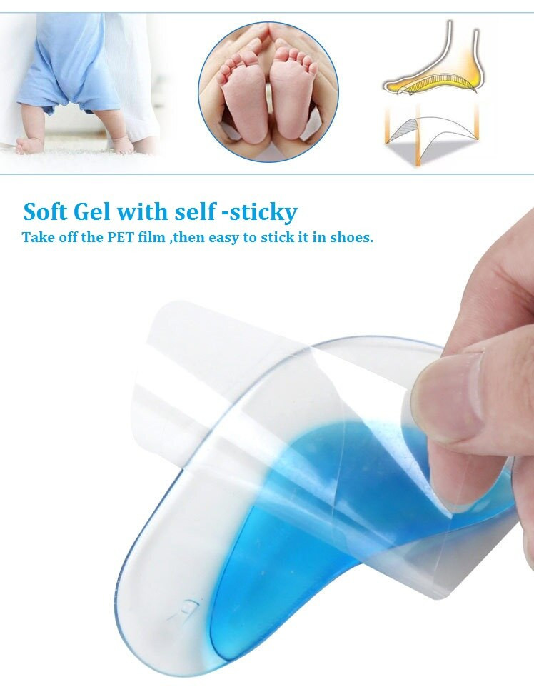 Almohadilla de apoyo para arco infantil plantilla ortopédica correcta para pie plano para niños almohadillas ortopédicas para insertar almohadillas de corrección de arco cojín El soporte del arco para los pies planos es importante para prevenir lesiones y reducir el estrés, así como reducir el dolor de pies. También son una herramienta correctora para los pies salpicados. La plantilla principal es clara, mientras que el cojín de soporte del arco es azul. Diseñado para dar un suave control y soporte al pie. Consigue alivio instantáneo de arcos dolorosos con este soporte para arco de gel de silicona. Muy útil como dispositivo de prevención para aquellos que mantienen largas horas en sus pies. Cuando se estire, lávalos con agua y sécalos con un paño y están listos para ser usados de nuevo. Material de alta calidad, suave y cómodo. Material: silicona