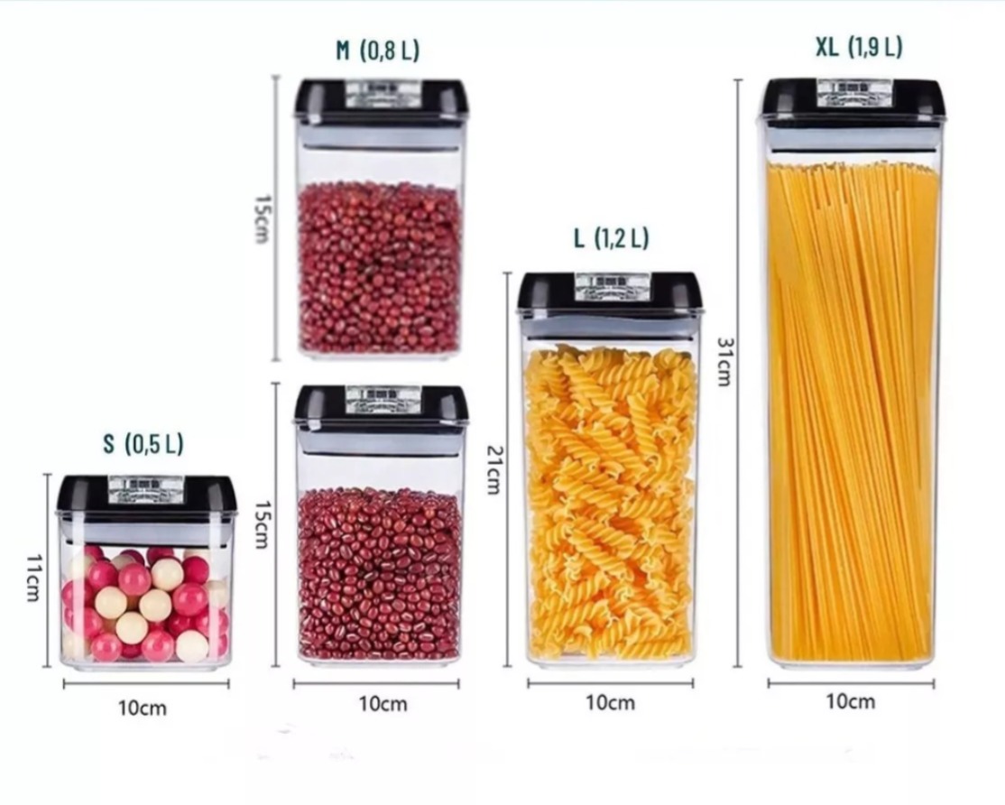 Estos recipientes herméticos son la solución ideal para almacenar granos, cereales, pastas, legumbres, azúcar y más. Gracias a su diseño apilable y transparente, podrás optimizar el espacio en tu cocina y encontrar lo que necesitas en segundos.
