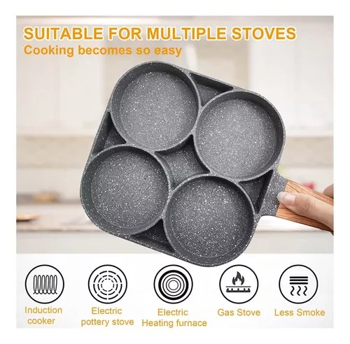 Sartén Antiadherente de 4 Compartimentos – Cocina Fácil y Rápida Prepara desayunos y comidas en menos tiempo con esta sartén multifuncional de 4 compartimentos, perfecta para cocinar huevos, tortillas, panqueques, salchichas, tocino, carne o pollo sin mezclar sabores. Características destacadas: Revestimiento antiadherente cerámico: Evita que los alimentos se peguen y facilita la limpieza. Material resistente y duradero: Distribuye el calor de manera uniforme para una cocción perfecta. Mango de baquelita con veta de madera: Aislamiento térmico y agarre cómodo para mayor seguridad. Ecológica y segura: Libre de PFOA, plomo y cadmio. Fácil de guardar: Diseño compacto que ocupa poco espacio en tu cocina. Compatible con cocinas a gas y eléctricas: Versatilidad para todo tipo de cocina. Apta para lavavajillas: Limpieza rápida y sin esfuerzo. Dimensiones 35 cm de largo x 18 cm de ancho x 2 cm de alto. Ahorra tiempo y cocina con más comodidad todos los días.