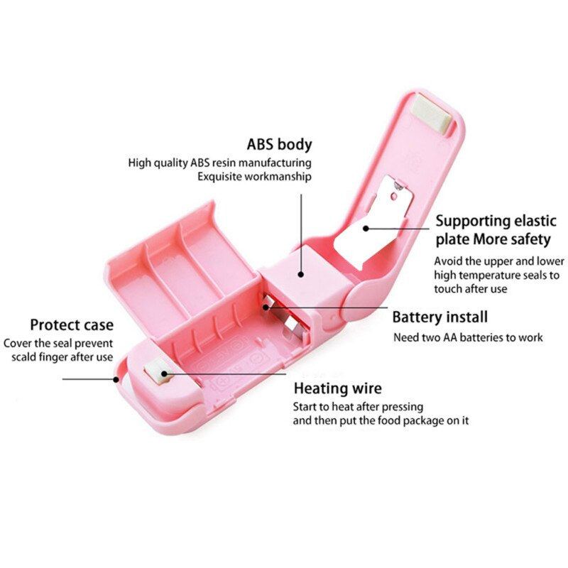 Fácil de usar andamp; diseño seguro, este sellador de bolsas es mini y portátil. funciona simplemente con 2 pilas alcalinas aa. precaliente el artículo presionando 3 ~ 5 segundos antes de usarlo, luego simplemente deslícelo a lo largo del borde de cualquier bolsa y se sella herméticamente.