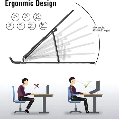Le permite trabajar de manera confortable, evitando dolores de cuello o espalda, cuando se está por largas jornadas trabajando en la computadora portátil, viendo videos o leyendo libros en el escritorio. Puedes ajustar continuamente diferentes ángulos de 0 ° a 45° para mayor comodidad.