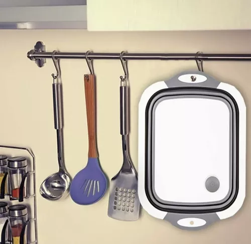 Una herramienta multifuncional que combina tabla de picar, contenedor de lavado y colador en un solo producto compacto y moderno, ideal para optimizar tu cocina.